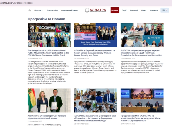 - Веде громадянську дипломатію у Вашингтоні, на заходах ООН, COP та ОБСЄ.