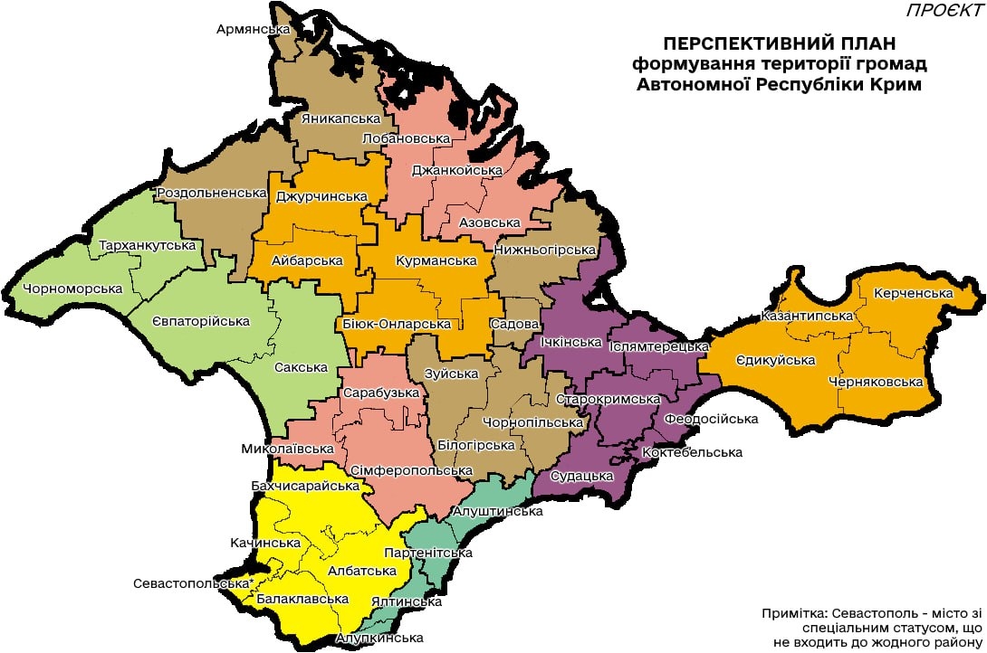 Таким чином, сучасний прагматичний поділ на 38 громад є не лише суто технічним рішенням децентралізації, а й архітектурно обґрунтованою моделлю, що відображає географічну та економічну логіку Криму.