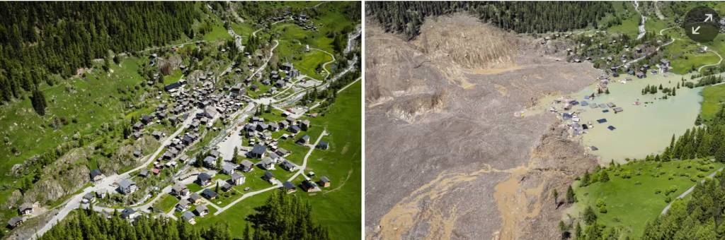 🟠 Новина про містечко Blatten в Швейцарії, містечко було буквально знищене зсувом грунту; якось засмучуюся з такого, бо ще от вчора це було жваве маленьку містечко, а вже наступної миті воно зникло і все, зникли роки життя там (і мимоволі згадуєш руїни, які лишаються від міст і сіл України, які плюндрує срана русня)