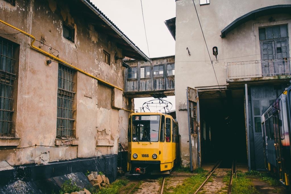 🟠 Кілька фоточок зі старого(1908р) трамвайного депо у Львові (мені подобається як довелося підрізати один з кутів будівлі, щоб трамвайчик проходив, модерн проблем реквайр модерн солютіонс)