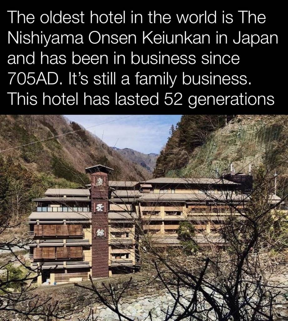 🟠 В інстаграмі наткнувся на цей пост про The Nishiyama Onsen Keiunkan in Japan, найстаріший готель в світі і це вражає, бо це про бізнес який діє з 705 року і понині і більшу частину своєї історії ще й керувався однією сімʼєю. На вікіпедії є окрема сторінка про нього де можна трошки більше почитати.