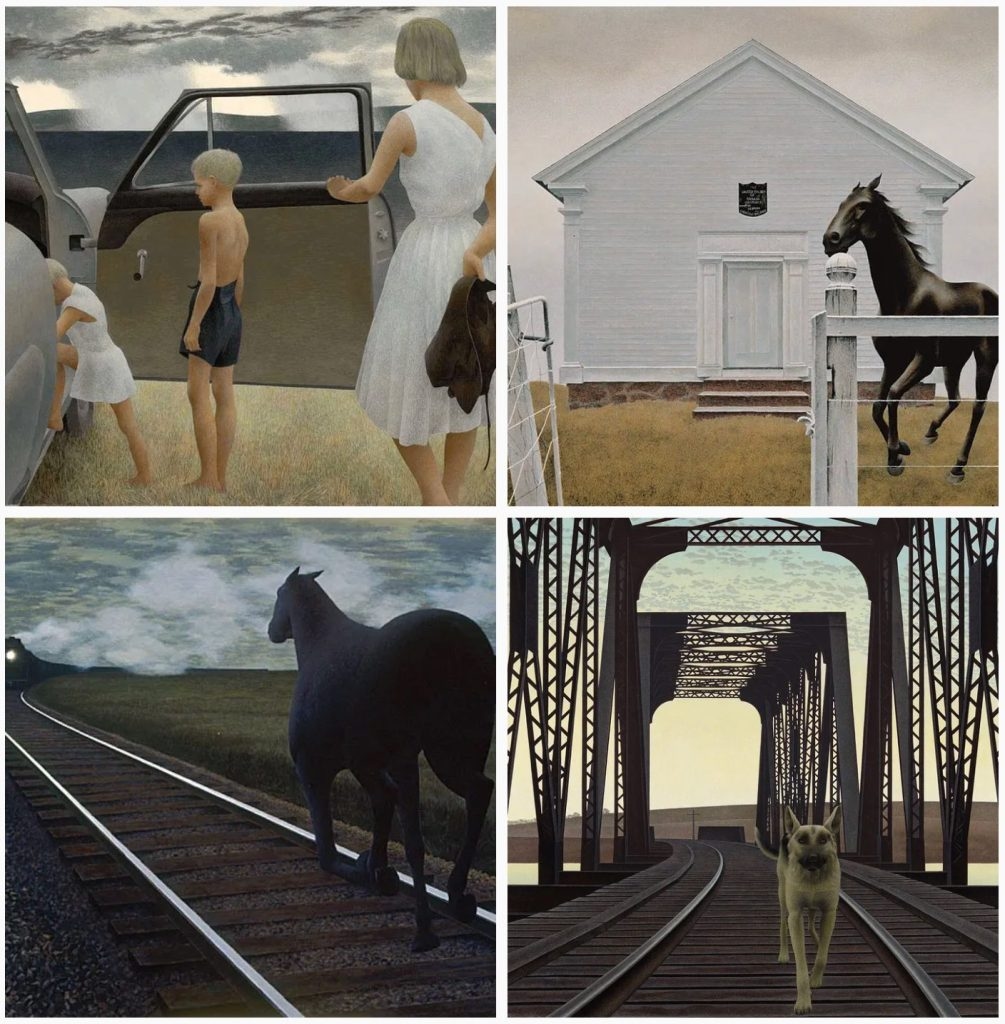 🟠 Твітер підкинув картинку, а я вже вирішив трошки далі пошукати ще - до вашої уваги творчість Alex Colville (August 24, 1920 – July 16, 2013), канадського художника, що творив в своїй неповторній манері магічного реалізму, яка буквально виглядає так, ніби це скриншоти з ігор початку 2000х. За посиланням галерея його творчості на офіційному сайті.