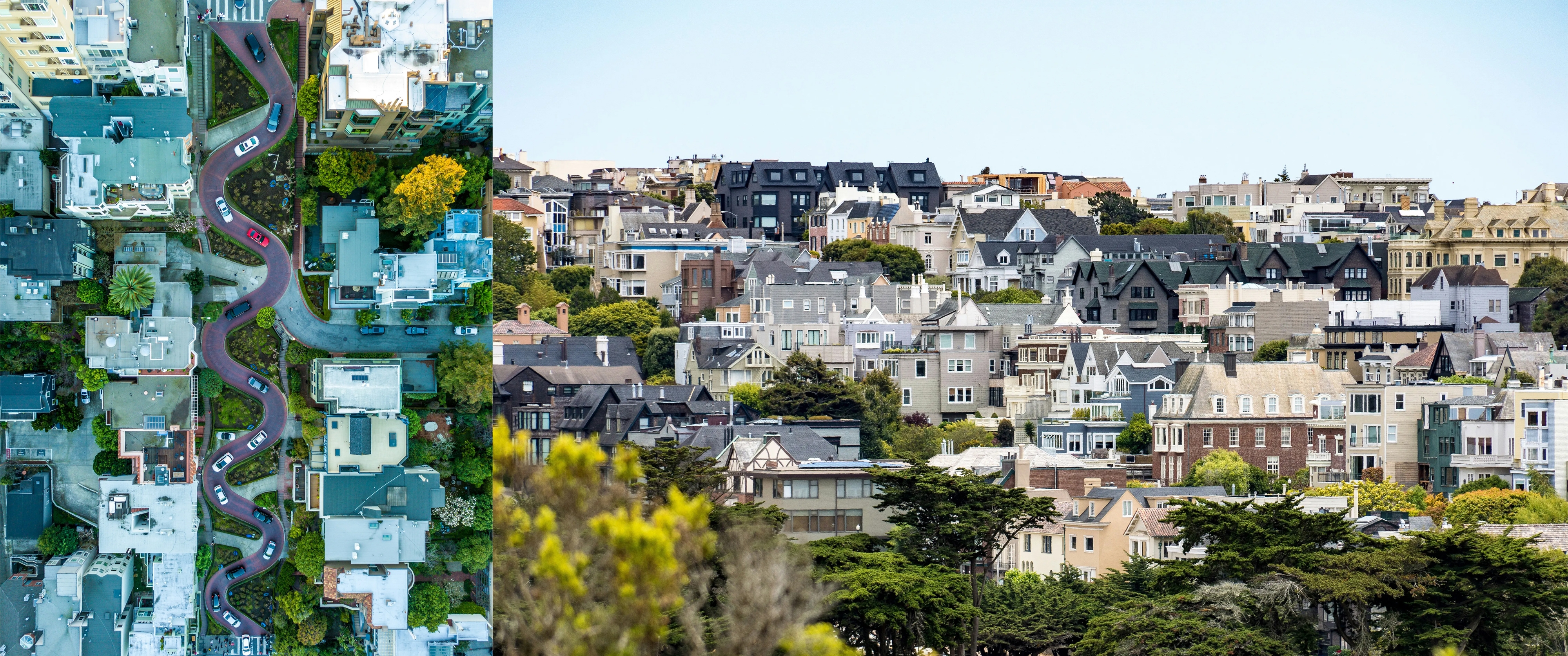 Сан-Франциско більше асоціюється з вікторіанськими painted ladies — яскраво розфарбованими дерев'яними будинками, але тут також можна зустріти теракотові дахи, особливо в районах з іспанським та середземноморським впливом (наприклад, Mission District).
