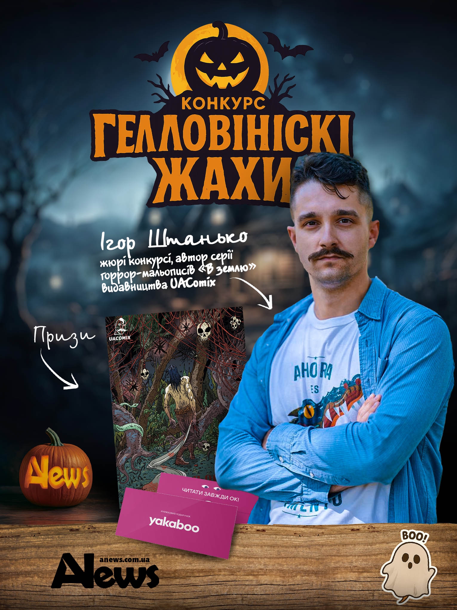 Наш спеціальний гість-журі — сучасний український автор жахів Ігор Штанько, автор серії горрор-мальописів “В землю” видавництва “UAComix” - обере найстрашніше та найцікавіше оповідання. Переможець отримає авторську книгу від журі та Подарунковий сертифікат на 500 грн в магазині Yakaboo від ANews.