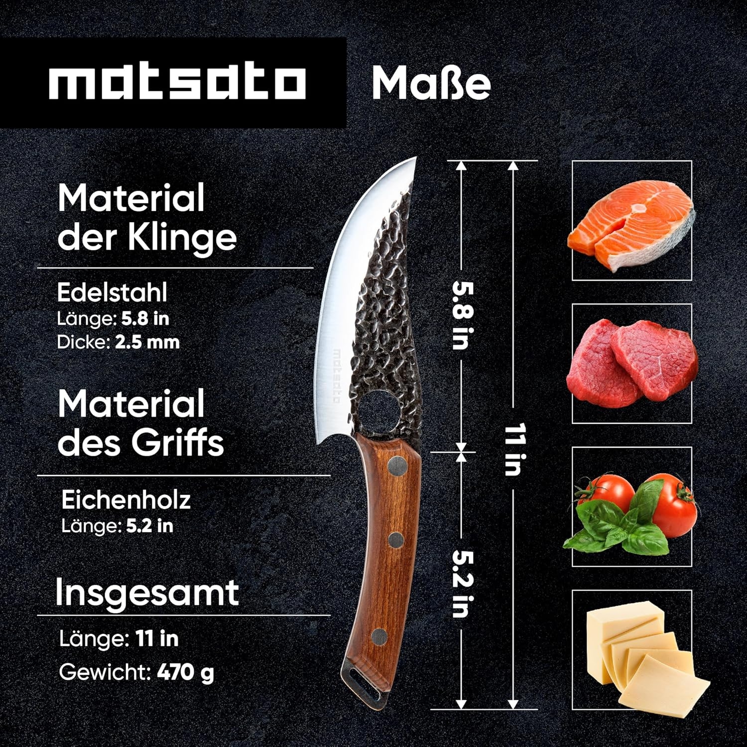 Carving: Ideal for roasts and poultry, the Matsato Knife delivers clean cuts that preserve the integrity of your dish.