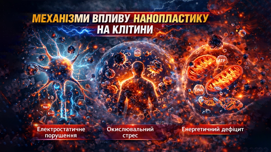 Потрапляючи в клітину, нанопластик стимулює надлишкове утворення активних форм кисню, що призводить до окислювального стресу. В нормі антиоксиданти нейтралізують ці молекули, але хронічне вплив частинок блокує цей механізм.