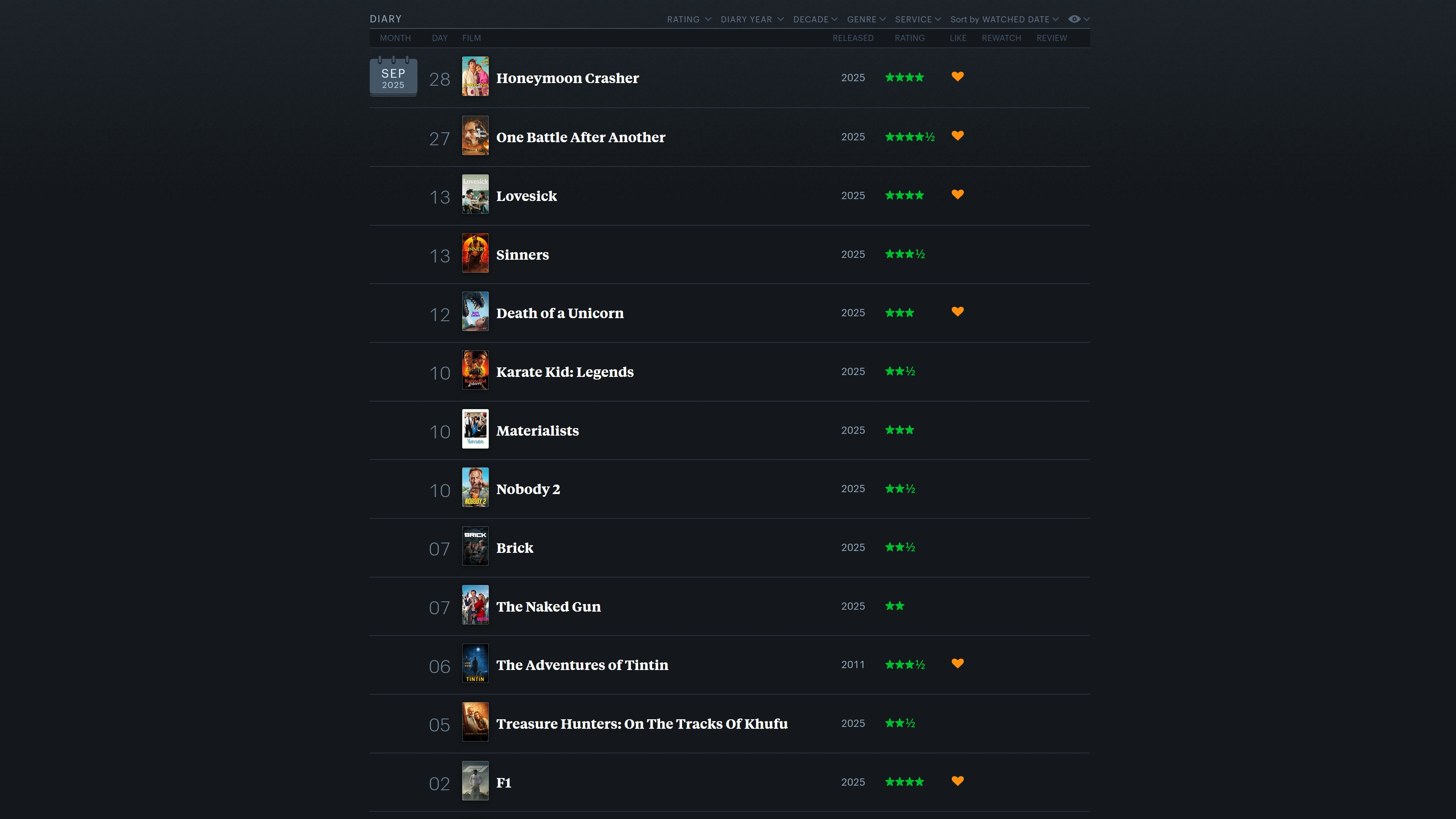 Мій список кращих фільмів цього року на Letterboxd.