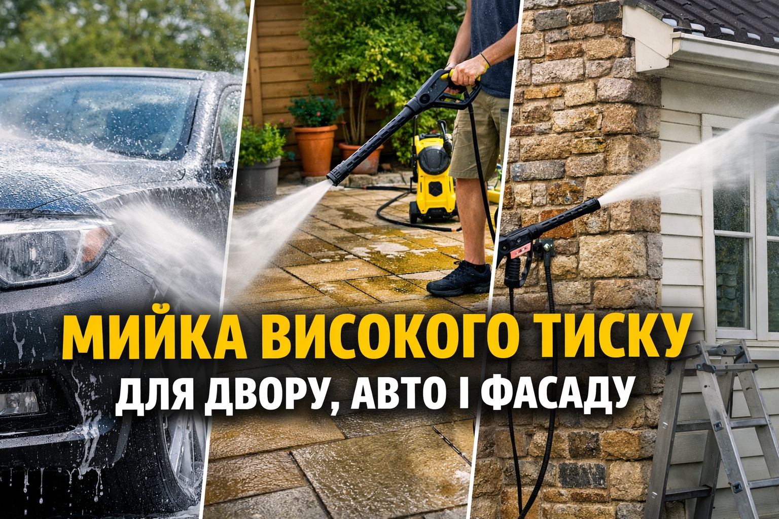 Для приватного будинку з великим подвір’ям сценарій уже інший. Тут мийка працює не лише по кузову авто, а й по бруківці, фасаду, огорожі, воротах, сходах, інколи навіть по господарському обладнанню. У такому випадку техніка має бути витривалішою, продуктивнішою й зручнішою для довшої роботи.