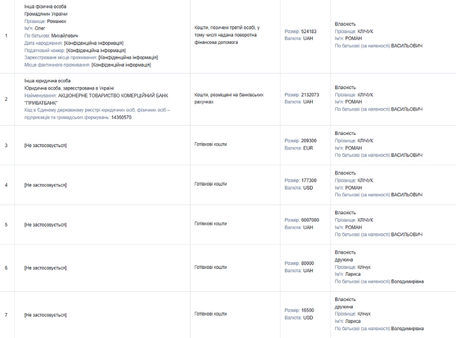 Лише готівкою родина Клічуків зберігає понад 6 мільйонів гривень, 209 тисяч євро та 177 тисяч доларів США. Додайте сюди банківські депозити на суму понад 2 мільйони гривень. А головне — корпоративні права у бізнесі, сумарна вартість яких перевищує 77 млн грн.