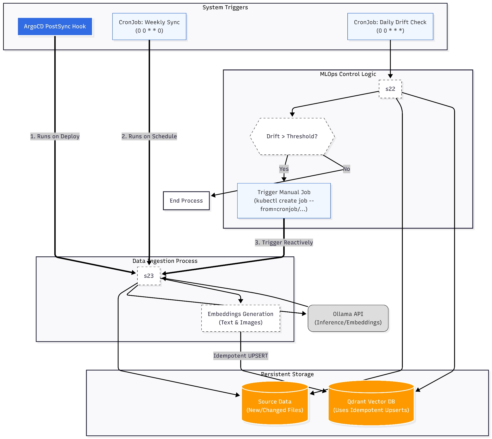 paths-ignore, щоб не запускати тестів, коли змінюються неважливі для системи дані, наприклад документація.Drift Detection: CronJob для розрахунку data drif запускає data_processing лише при значній зміні розподілу даних.