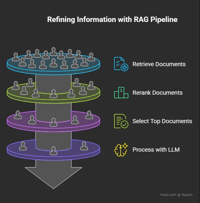 Reranker - семантичний сенс через cross - encoders (BERT). Retriever знаходить n- кількість векторів, reranker обирає з них ті, що “відповідають” на питання. Такі системи набагато повільніші, але прибирають непотрібне сміття, яке дає retriever.