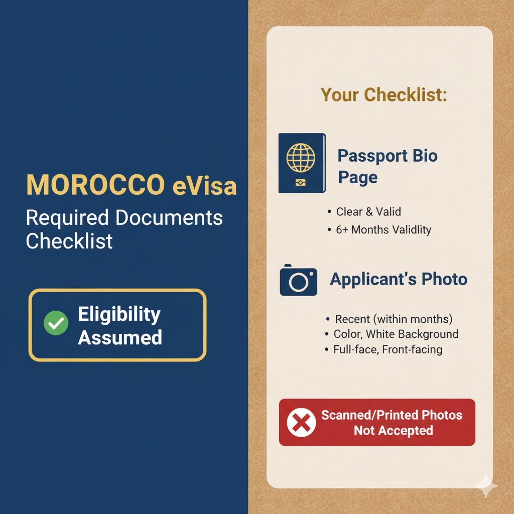 If you were eligible for a Morocco eVisa, here’s a checklist of what you’ll typically required document for Morocco eVisa: