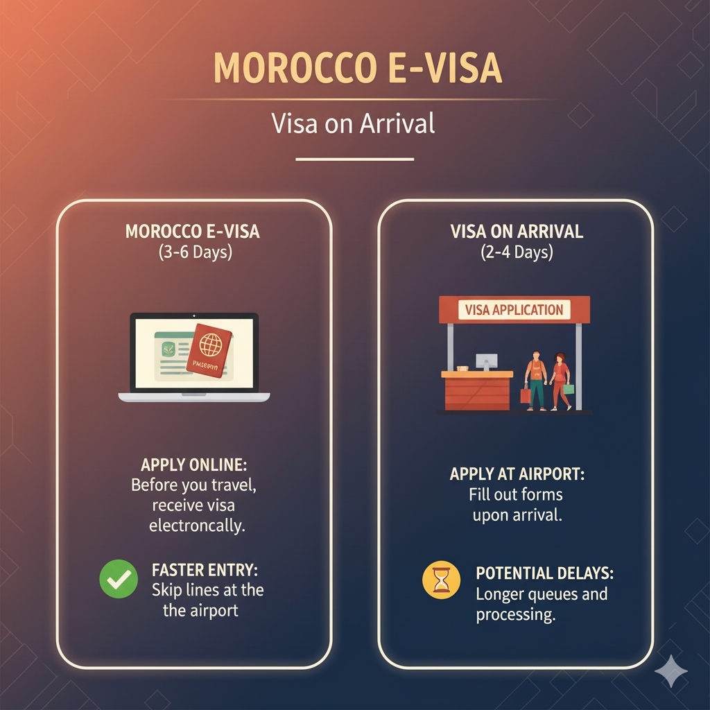 What is the difference between a Morocco e-Visa and a visa on arrival?