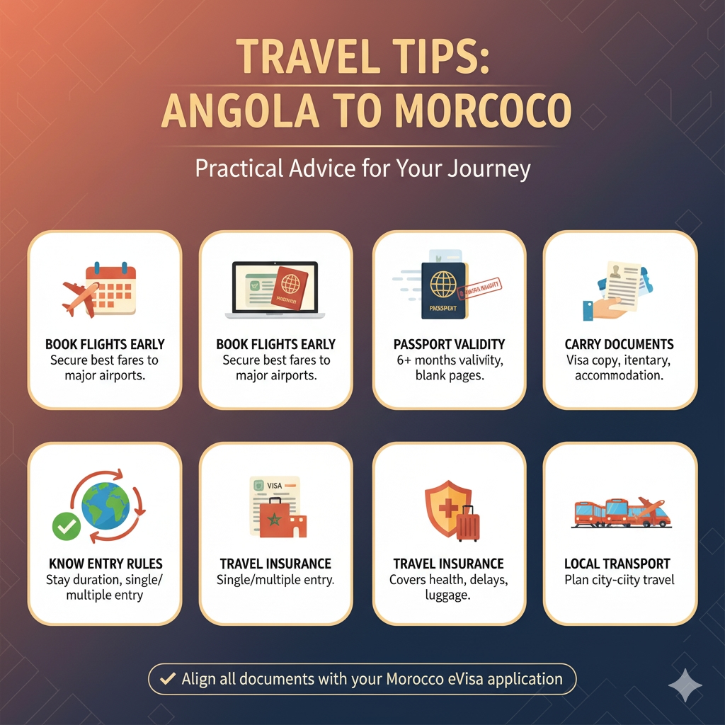 If applying via the regular visa route (as an Angolan citizen likely), additional or slightly different documentation may be required; always check with the Moroccan diplomatic mission.