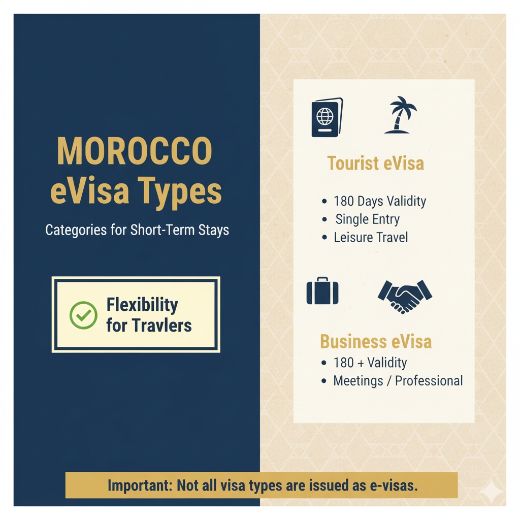 While not every type is issued as an “e-visa,” understanding “Morocco eVisa types” helps you decide the right route for your travel plans.