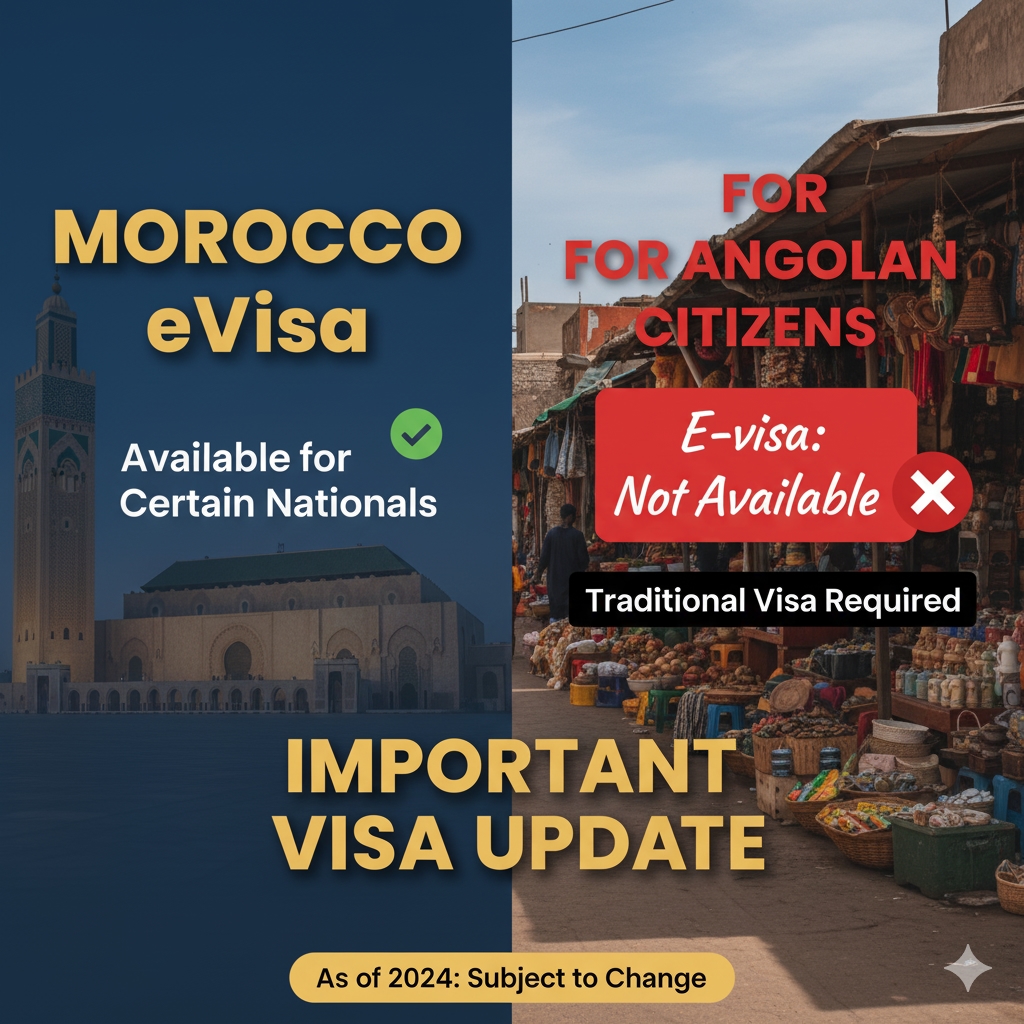 Here’s where it gets a bit nuanced. The concept of the Morocco eVisa is real: Morocco introduced an online visa process for certain eligible nationals. However: for Angolan citizens it appears that this option may not yet apply. One source states clearly that for Angolan passport holders, “E-visa: Not Available.” So while the “Morocco eVisa” is a great innovation, as an Angolan citizen you will generally need to go the traditional visa route rather than a fully online e-visa process—unless further changes are made.