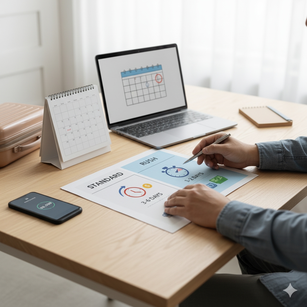 Apply early: Don’t wait until the last minute. Even if standard processing is 3-7 days, unexpected delays happen.