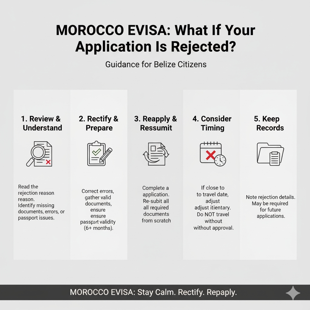 If your application for the Morocco eVisa (as a Belize citizen) is refused, don’t panic — here are steps you can take: