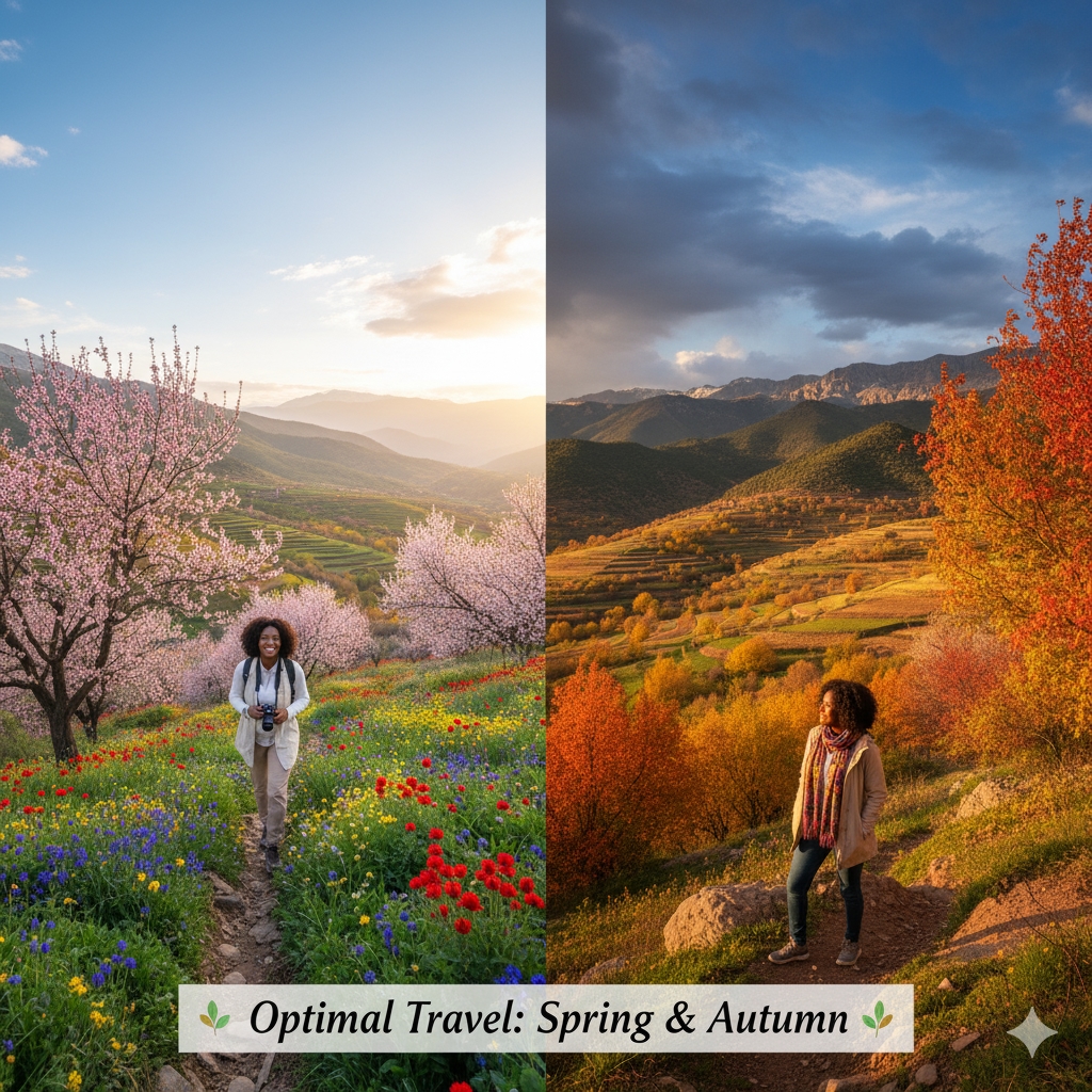 Autumn (September to October): Comfortable temperatures, vibrant colours in the Atlas Mountains, and great cultural events.