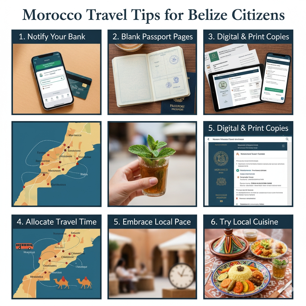 Have your documents safe: Bring your Belize passport, printed approval of your Morocco eVisa, travel insurance, and contact information for your accommodation.