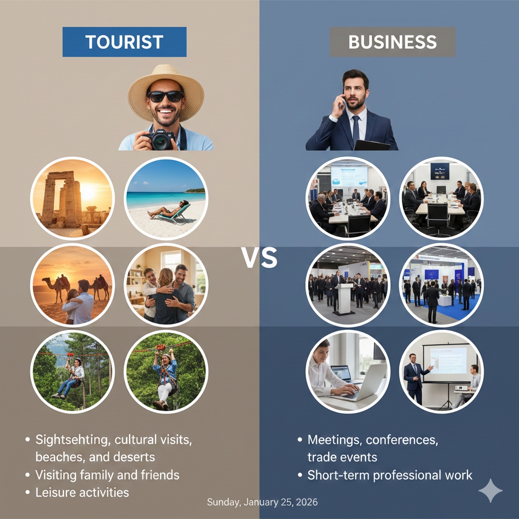 Make sure to pick the visa type that matches your travel plans, because activities outside your visa type aren’t allowed.