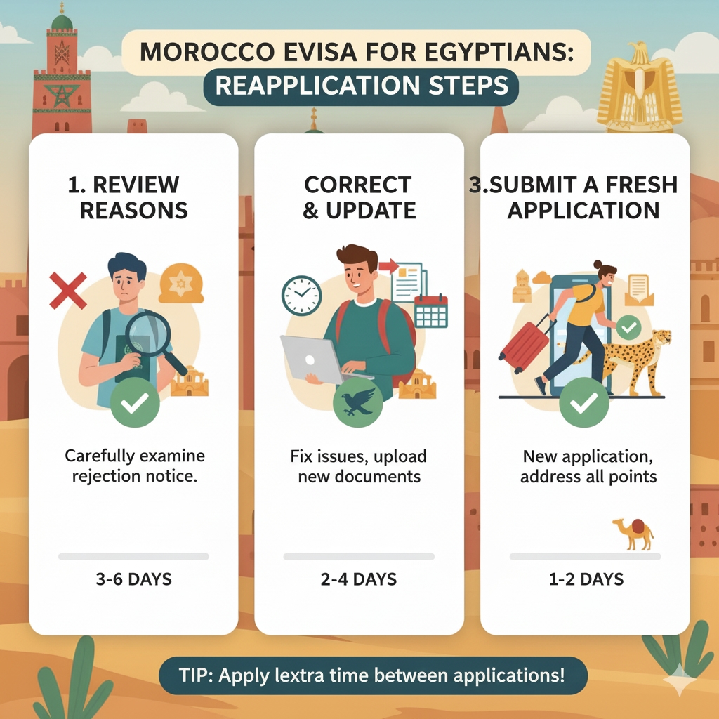 How can Egyptians reapply if their Morocco eVisa gets rejected?