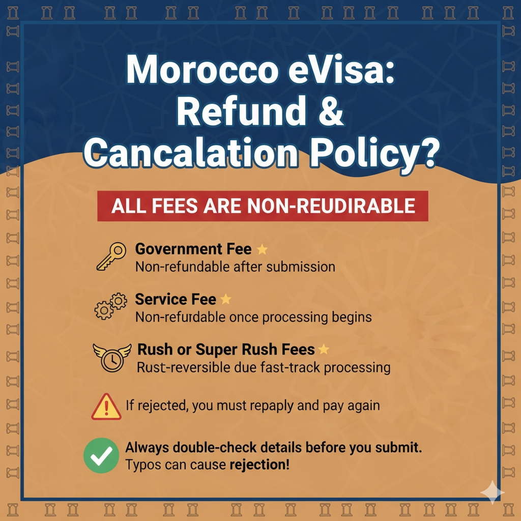 What is the refund and cancellation policy for the Morocco eVisa?