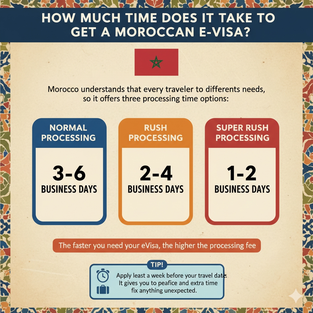 Morocco understands that every traveler has different needs, so it offers three processing time options: