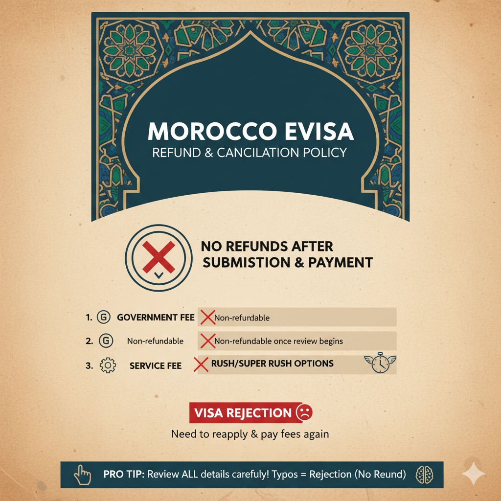 Before you hit that payment button, it’s good to know the refund rules. The Moroccan government and service fees are non-refundable, no matter the outcome.