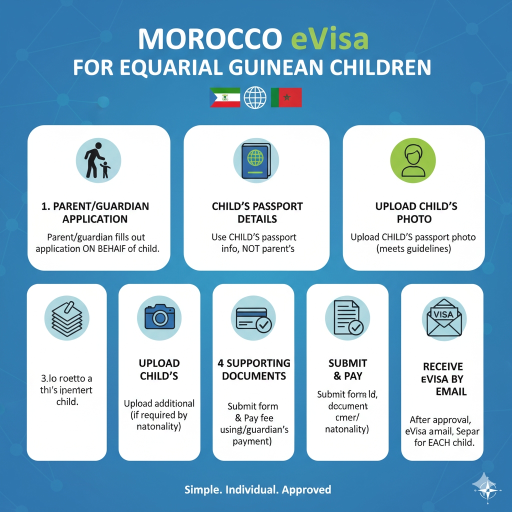 Children from Equatorial Guinea can also get a Morocco eVisa, but they must have their own individual application. Here is the correct and simple method: