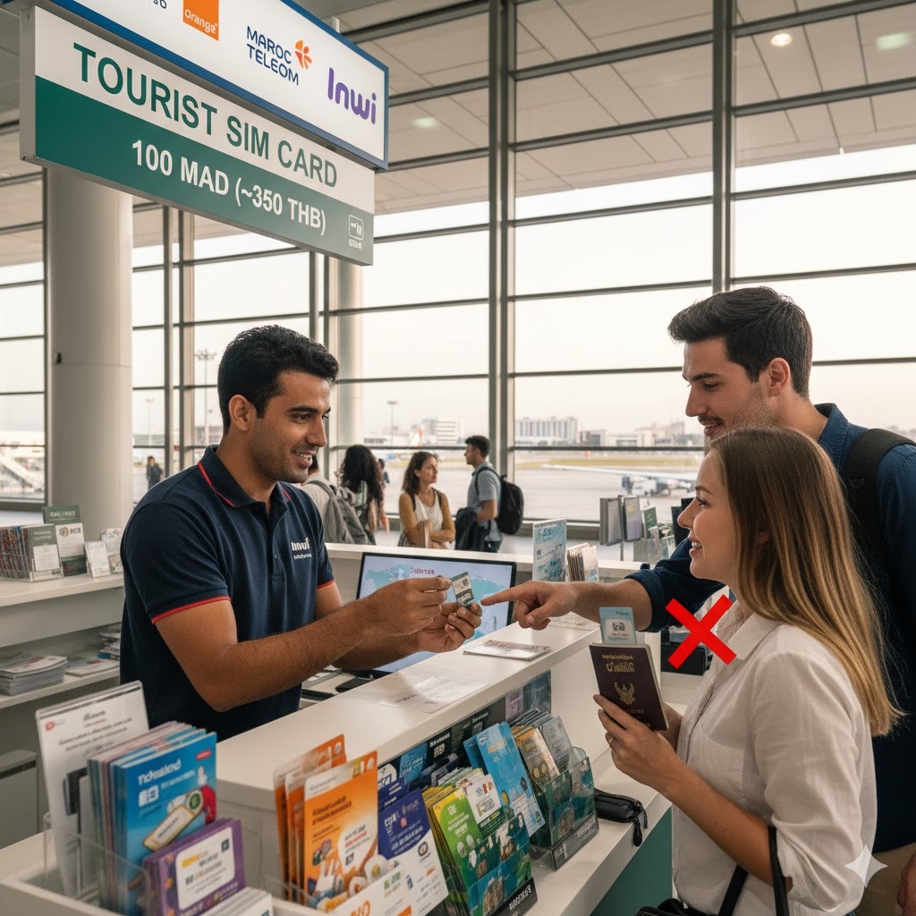 Look for the official kiosks for Orange, Maroc Telecom, or Inwi. You can get a prepaid SIM with many gigabytes of data for around 100 MAD (~350 THB), which is a great deal. They will install and activate it for you.