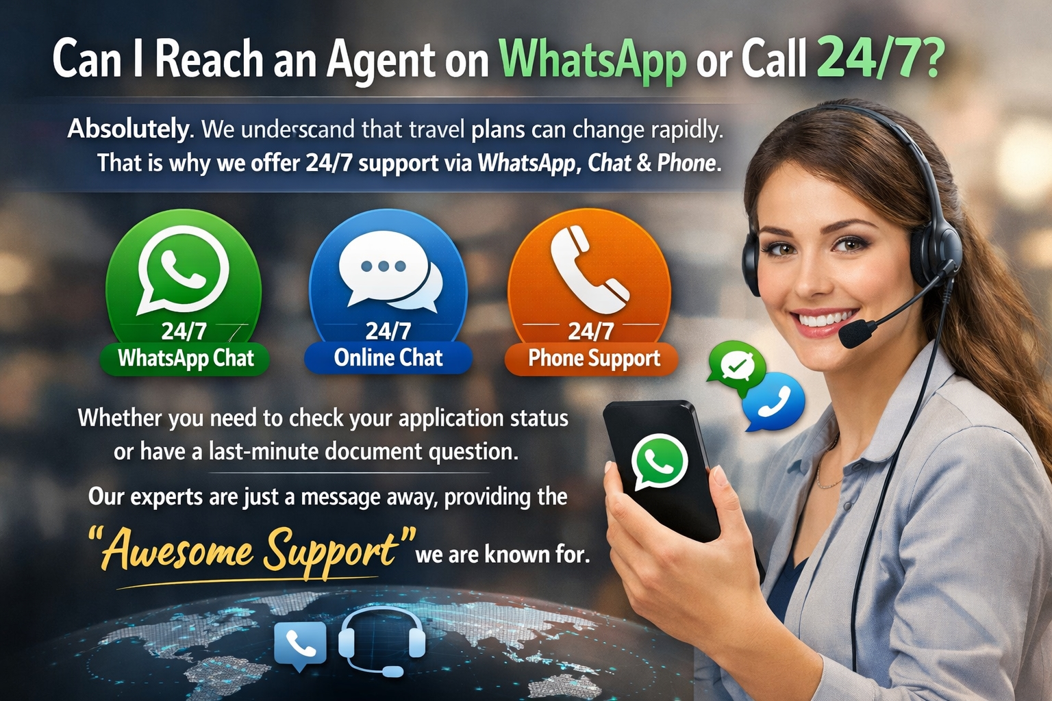Absolutely. We understand that travel plans can change rapidly. That is why we offer 24/7 support via WhatsApp, chat, and phone. Whether you need to check your application status or have a last-minute document question, our experts are just a message away, providing the "Awesome Support" we are known for.