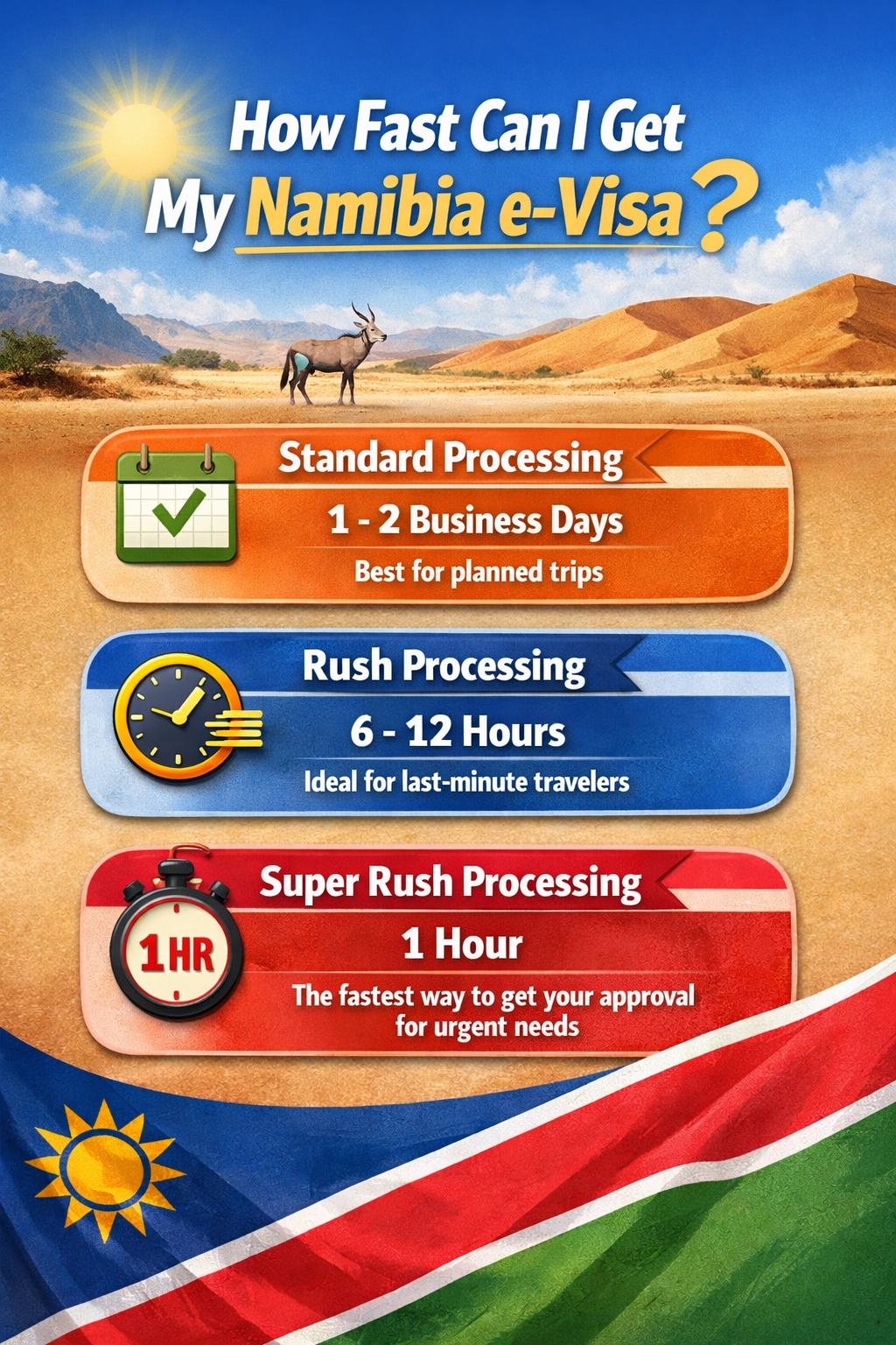 One of the biggest advantages of using namibia-evisa.com is the flexibility in processing speed: