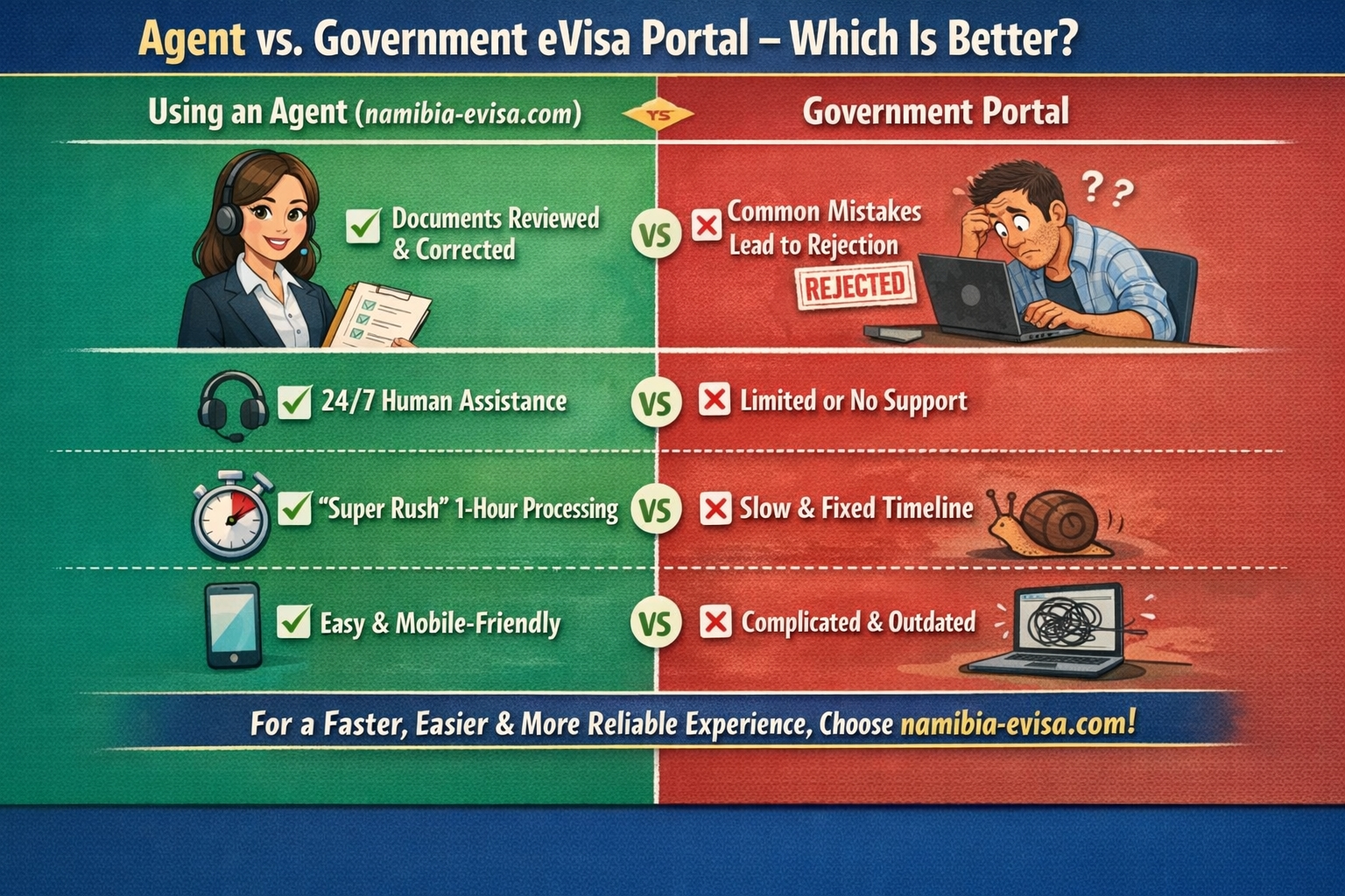 While you can apply via the government portal, many travelers prefer using an agent like namibia-evisa.com for several reasons: