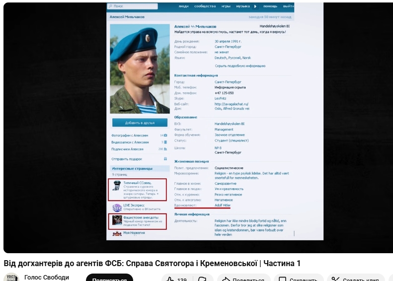 Подивіться на цього персонажа. НацUст із санкт-петербурга, відомий у своїх колах під кличкою Фріц. Сам про себе сказав: “Я - нацист.” Ще до 2014 року Мільчаков був активним учасником дохантерських спільнот. Він публічно знущався над тваринами, викладав фото з катованими та вбитими собаками.