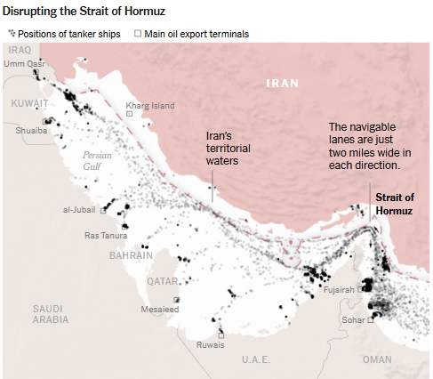 В останні дні іранські війська провели в протоці бойові навчання, що, на думку деяких експертів, є сигналом про те, що в разі початку війни Іран може закрити цей 90-мильний водний шлях. Закриття протоки також завдасть шкоди Ірану, обмеживши його можливості експортувати нафту до таких великих споживачів, як Китай.