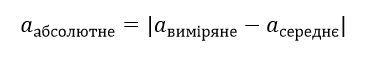 Абсолютна похибка — це різниця між вимірюваним значенням та середнім значенням.
