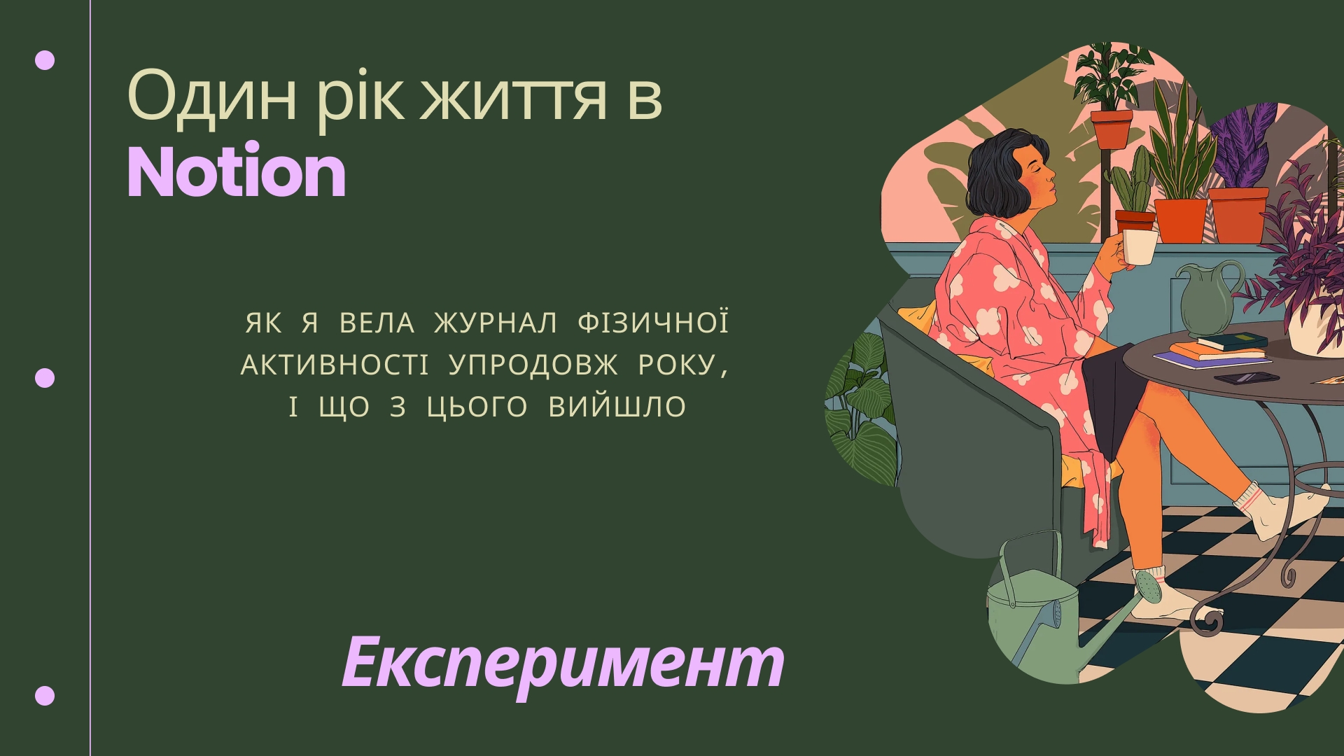 Але є і хороші новини. Я навчилася прислухатися до свого тіла: до того, що воно може і чого хоче. І — несподіванка — цього виявилося цілком достатньо. Далі я покажу, як одна база даних у Notion замінила мені новорічні обіцянки та підсумки року. Сподіваюся, це надихне вас не лише трекати свою фізичну активність, а й робити це з любов’ю і повагою до себе.