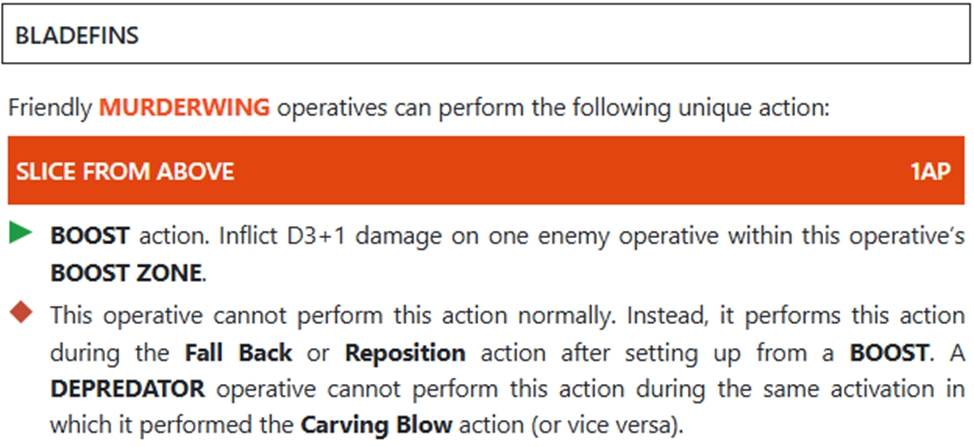 Коли ми робимо фолбек або репозішн, то можемо зробити буст екшн і нанести 1д3+1 морталок до одного ворожого оперативника в нашій буст зоні.