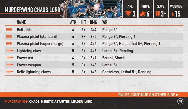 * Щодо хаос лорда. Якщо ми граємо проти еліти - я би брав подвійні кігті, якщо ж ми проти чогось іншого - можна задуматися над болт пістолетом + ПВ або ж павер фіст, тут вже треба обирати від опонента і вашого плану на гру.