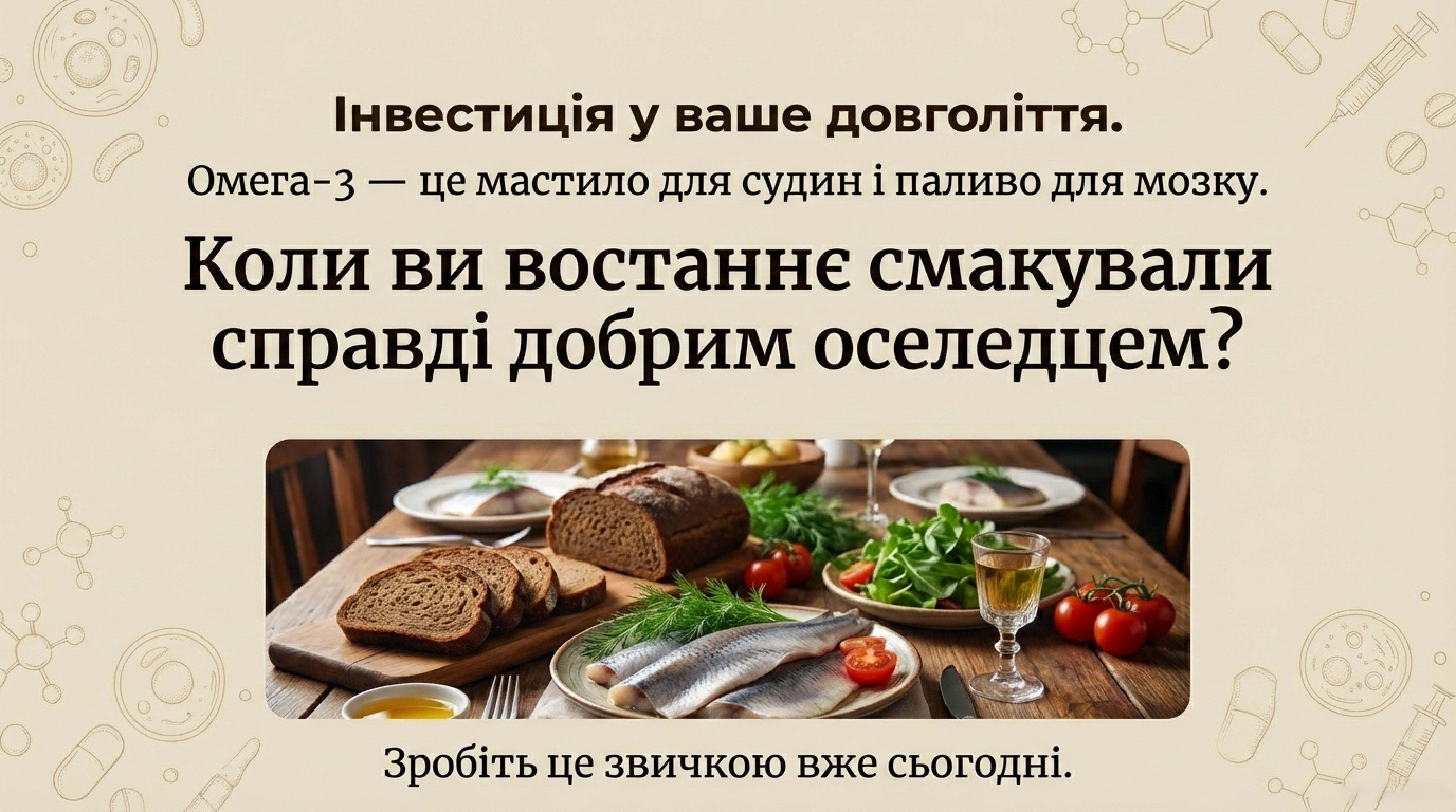 Омега-3 — це не магія, а фізіологічна потреба. Це своєрідне «мастило» для ваших судин і «паливо» для мозку. Не варто вичікувати ідеальну мить за годинником, просто зробіть це корисною звичкою: якісна риба на вечерю або капсула під час повноцінного сніданку.