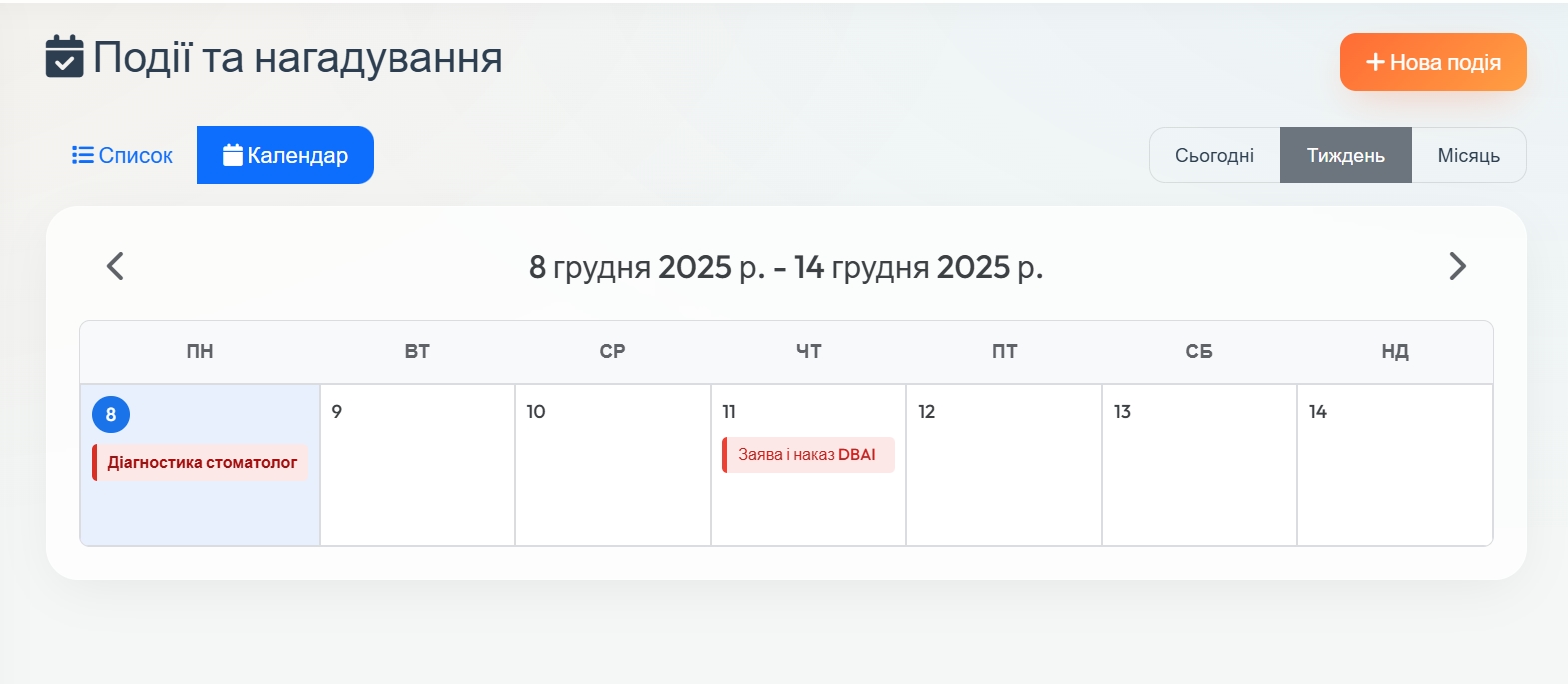 Усе в одному місці, без перемикання між різними сервісами. Ще було заплановано що б “за день” і “в день” приходили сповіщення в телеграм але тут не без багів, це одне із того що на стадії налагодження :)