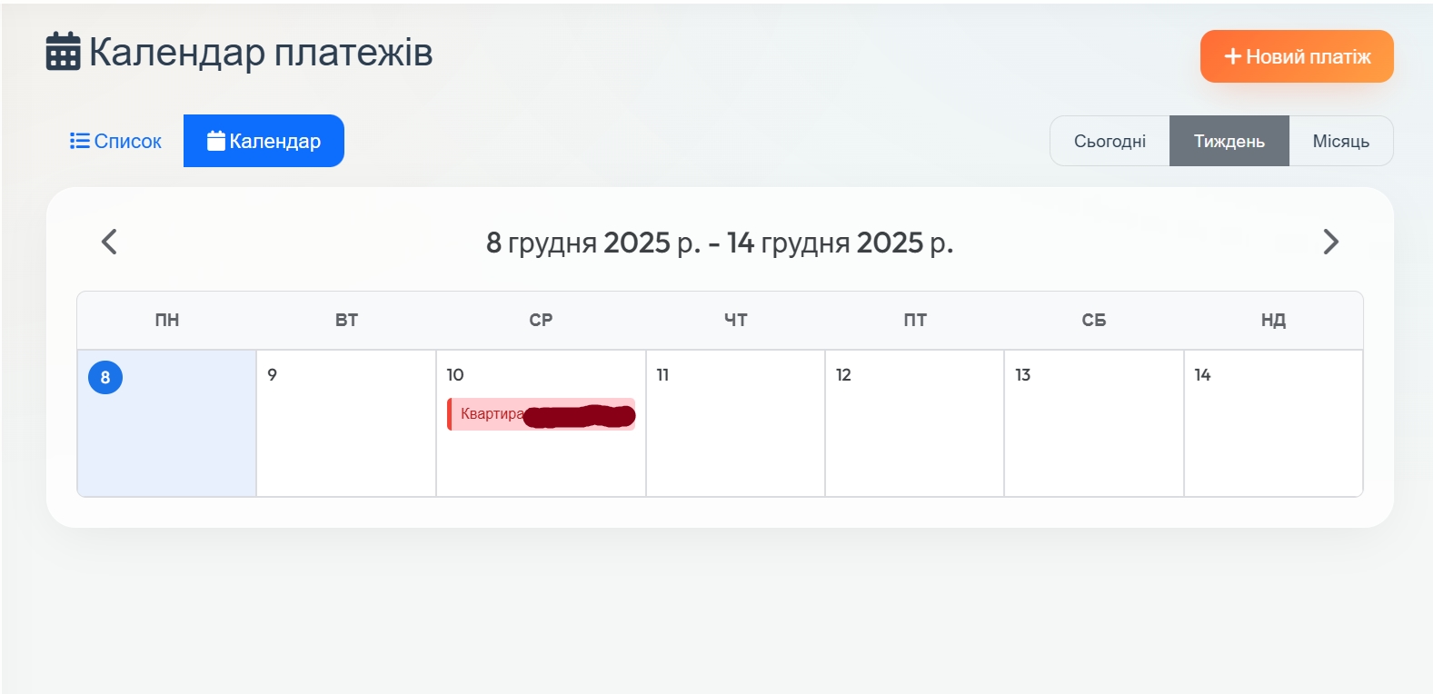 3. Календарі подій та платежів