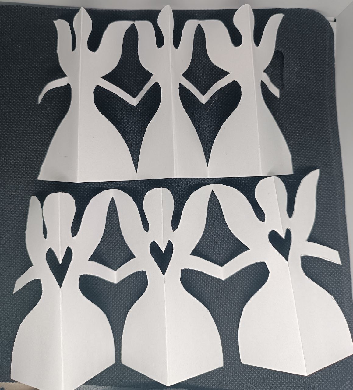 Можна поставити/повісити їх рядком або в круг. Можна зробити дві версії, як у мене, розрізати їх в місці перетину рук і склеїти різні види по черзі.