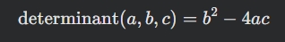 determinantТепер покроково розберемо наш код. Спочатку ми визначаємо декоратор для нашої функції, таким чином ми зазначаємо, що ми будемо виводити у LaTeX форматі саме функцію: