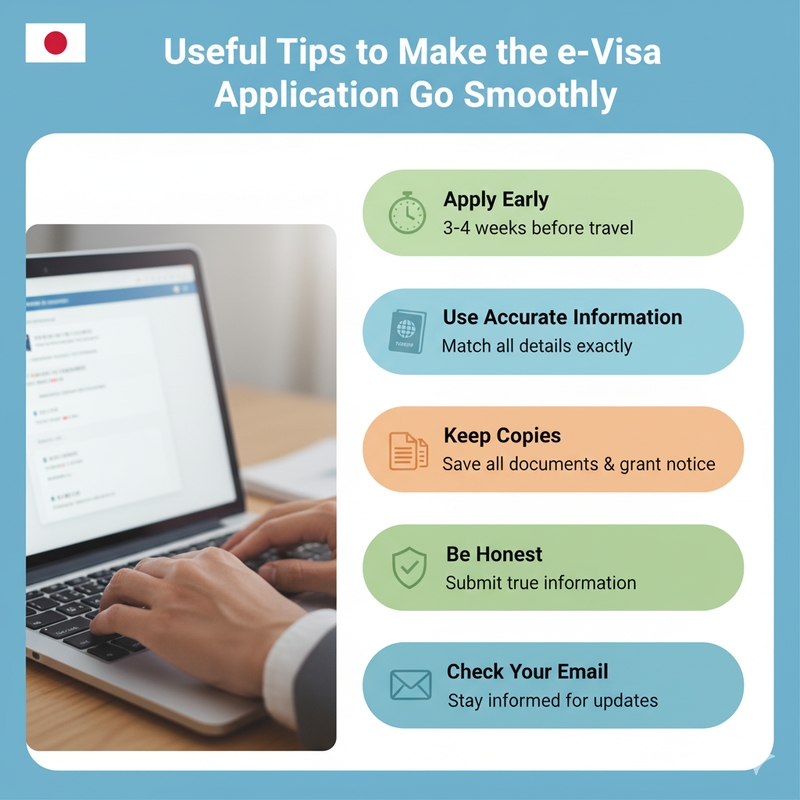 If your request for a Japan e-Visa is rejected, verify your papers thoroughly before reapplying. Rejections can be due to incomplete information, unclear reason for visiting, or insufficient financial documents.You can apply once again with better papers once you have addressed the problem. Keep in mind, correct information and decent supporting documents make you a better candidate.