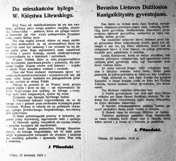 Але у ендеків була перевага. Поки Пілсудський жив мріями про відродження ВКЛ і Речі Посполитої, Дмовський вважав себе «модерним поляком», а відповідно замість ідеї-фікс «кордони 1772 року» пропонував realpolitik з динамічними кордонами і експансивним націоналізмом, і більше займався соціальними змінами і масовою політикою за соціаліста-Пілсудського. Тим паче, що зробити вибір на користь націоналізму зробити легше, ніж за якийсь примарний федеративний проєкт нащадків шляхти, і тут що ендеки, що литовські націоналісти не прагнули йти за Пілсудським у його мріях про умовне «нове ВКЛ».