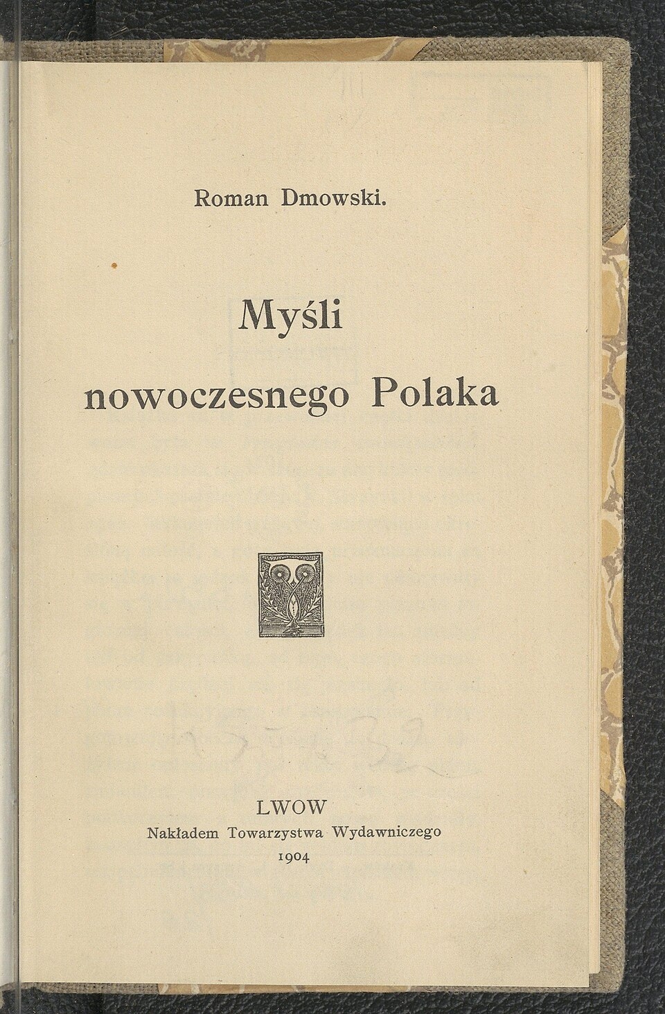 У 1902 році Р. Дмовський у своїй роботі «Myśli nowoczesnego Polaka» («Думки сучасного поляка») сформулював доктрину новітнього польського націоналізму, яка базувалася на принципах «націоналістичного егоїзму», основним принципом якого є «немає справедливості й кривди, але є тільки сила і слабкість», а до націй застосовується гегельянський принцип історичних і неісторичних. Відповідно, для Дмовського українці, литовці та інші меншини довкола є зоною польської експансії, бо є слабкими і неісторичними народами.