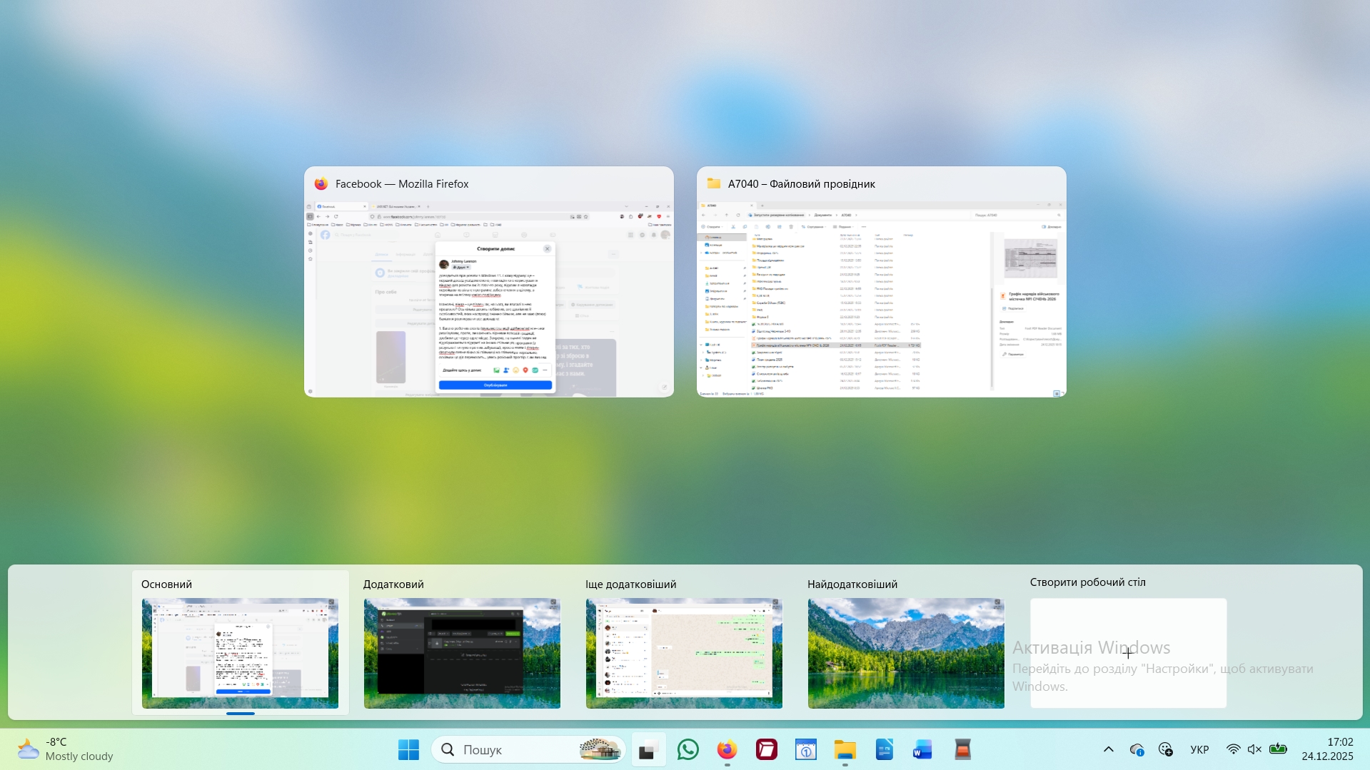 Коли я спробував налаштувати свій робочий простір, я відчув себе так, ніби мені зв’язали руки за спиною і попросили зіграти на піаніно. У Linux віртуальні стільниці – це святе. Ти можеш мати їх десять, перемикатися між ними одним рухом пальця, і кожна буде пам’ятати своє місце. В Windows 11 віртуальні стільниці теж ніби є, але працюють вони з грацією п’яного слона. Спробуйте перетягнути вікно з однієї стільниці на іншу – і ви зрозумієте, що таке справжнє випробування для терпіння. Система часто «забуває», де що було, або просто підгальмовує під час перемикання. Це особливо дратує, коли ти звик до миттєвого відгуку «легких» оточень типу XFCE або KDE Plasma, хоча особисто я є фанатом GNOME.