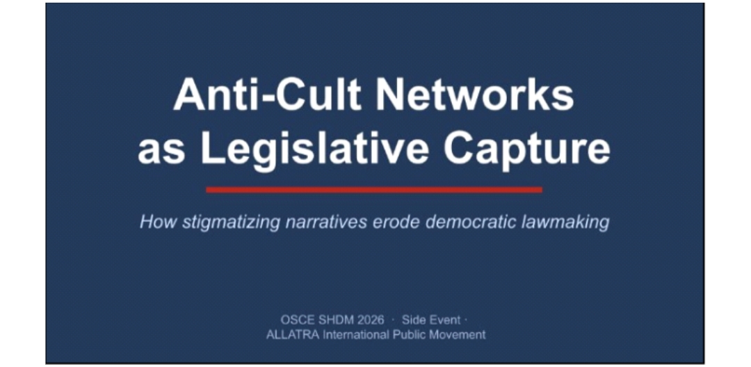 Окрема частина заходу була присвячена справі Міжнародного громадського руху АЛЛАТРА як у росії, так і в Україні, представленій як приклад того, як скоординовані кампанії стигматизації, організовані антикультовою мережею під керівництвом російського РАЦИРС, можуть впливати на громадське сприйняття та інституційні підходи навіть у протилежних геополітичних контекстах. Було зроблено посилання на рішення українського суду від 25 лютого 2026 року, яке не знайшло правових підстав для заборони руху та відхилило доказову базу через методологічну ненадійність та упередженість.